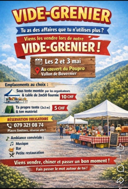 Samedi 25.04.2026 dès 8h à l’abri du Pouproz (en cas de mauvais temps, report au samedi 09.05.2026).